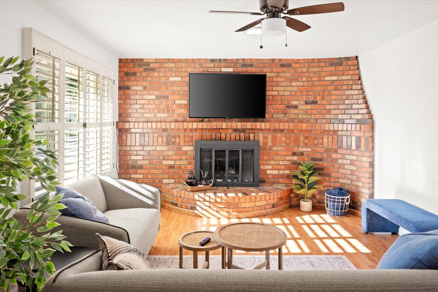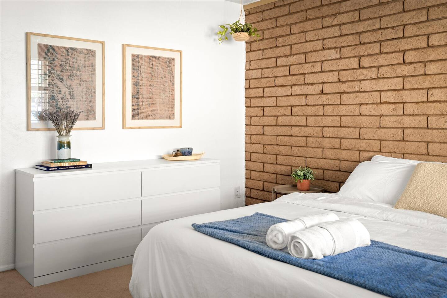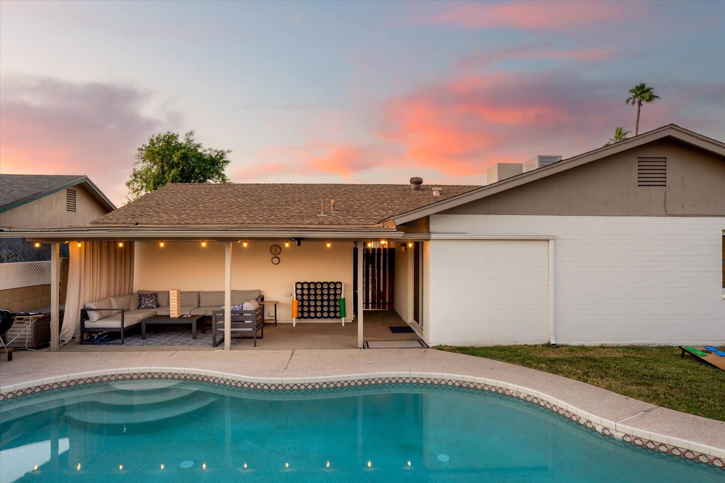Modern 3BR/2BA home with a private pool, fenced dog-friendly yard, and a glowing mural patio for nights outside. Enjoy super-fast Wi-Fi, smart TVs, a fully stocked kitchen, in-home laundry, and a Tesla/EV charger. Quiet street next to Cactus Park with quick I-17 access—easy trips to Sedona/Flagstaff, plus minutes to ASU West, Glendale shopping, and downtown Phoenix.