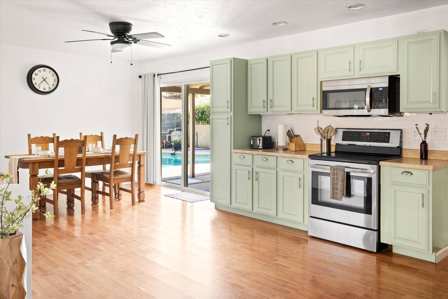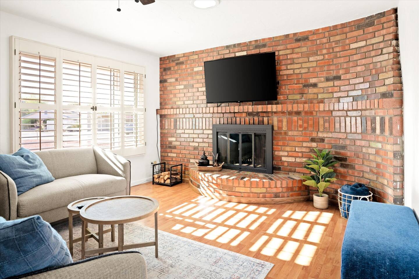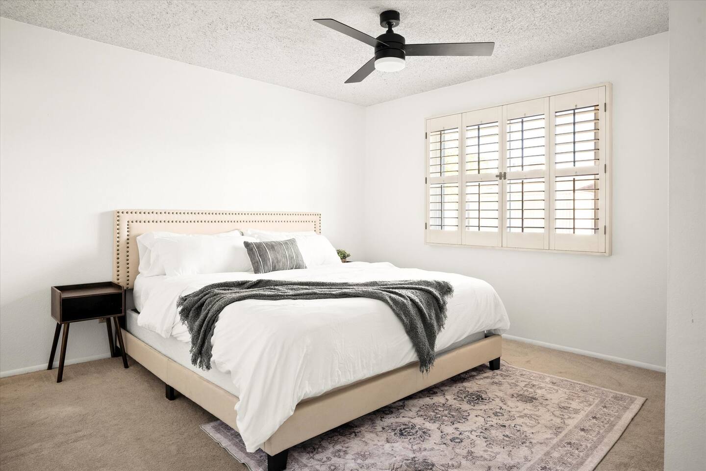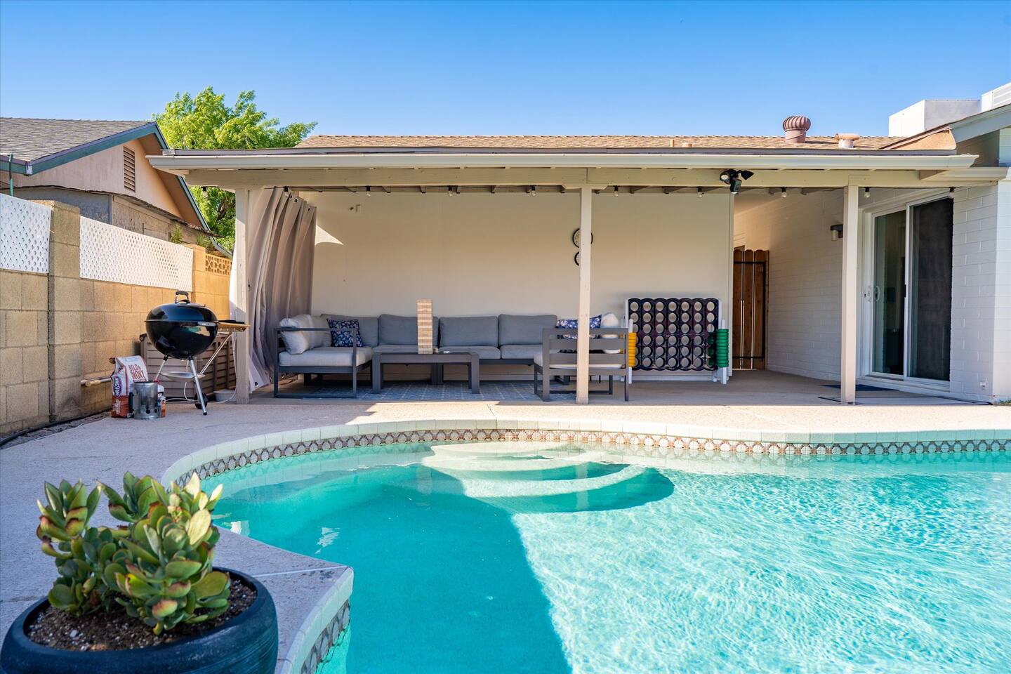 Why guests book this home - Private backyard retreat: pool, lounge seating, BBQ-ready patio, and nighttime glow lighting - Work-from-home ready: super-fast Wi-Fi + smart TVs throughout - Family + pet friendly: fenced yard (pets welcome with fee) - Easy logistics: keyless entry, in-home laundry, driveway parking, EV charging - Location advantage: steps to Cactus Park, quick I-17 access for day trips The home A comfortable, modern setup designed for groups who want a clean, easy stay—whether you’re here for family time, remote work, or a weekend reset. Backyard + pool Your own private space to unwind: swim, grill, and hang out under the patio lights after dark. The pool is serviced weekly. Location Quiet residential street next to Cactus Park. You’re close to ASU West, local restaurants, and Glendale shopping—and positioned well for downtown Phoenix and day trips north. Safety note No lifeguard on duty. Swim at your own risk and supervise children at all times.