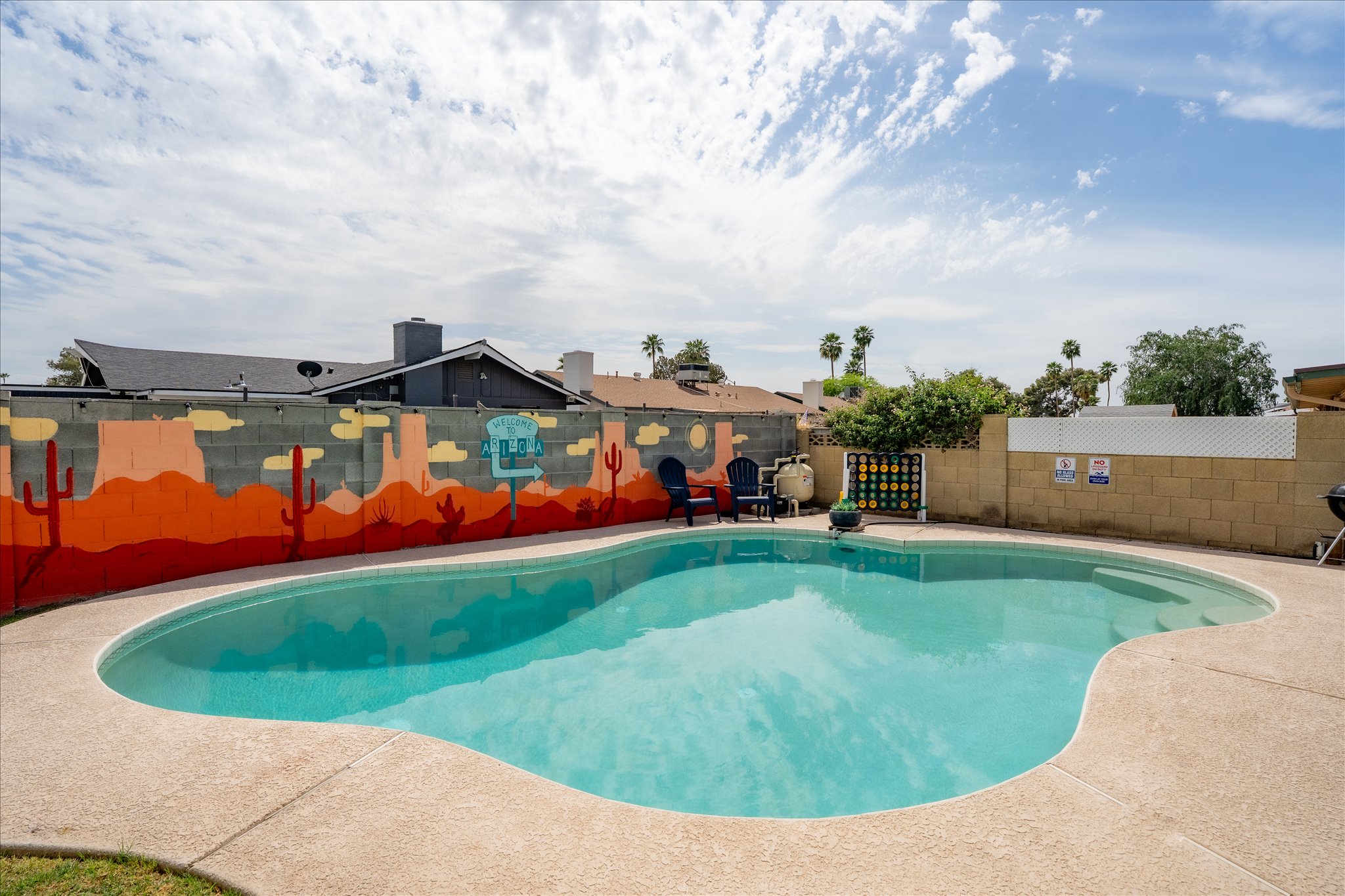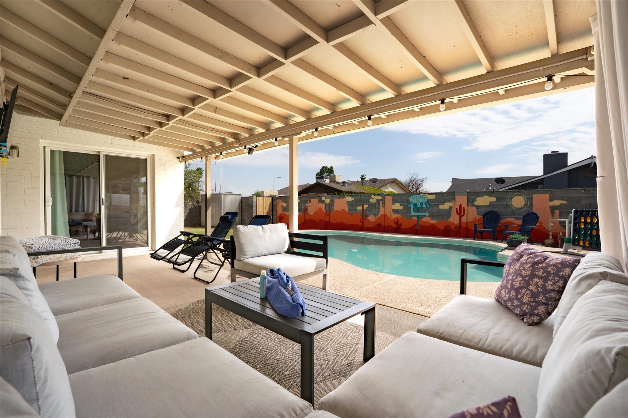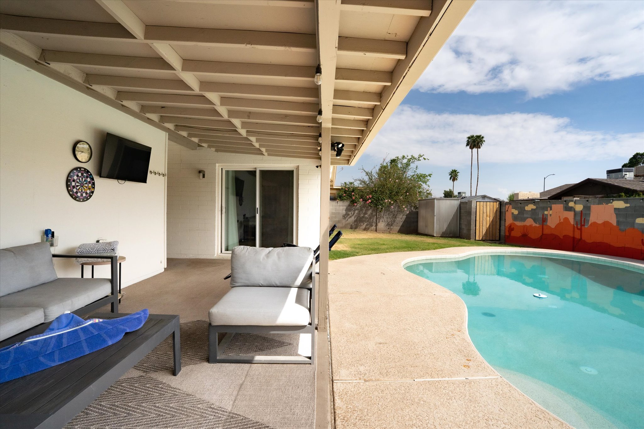 Remodeled 3BR/2BA Phoenix home with a private pool, fenced yard, covered patio with outdoor TV, EV charger, and fast Wi‑Fi. Great for families, small groups, pet travelers, and remote work.