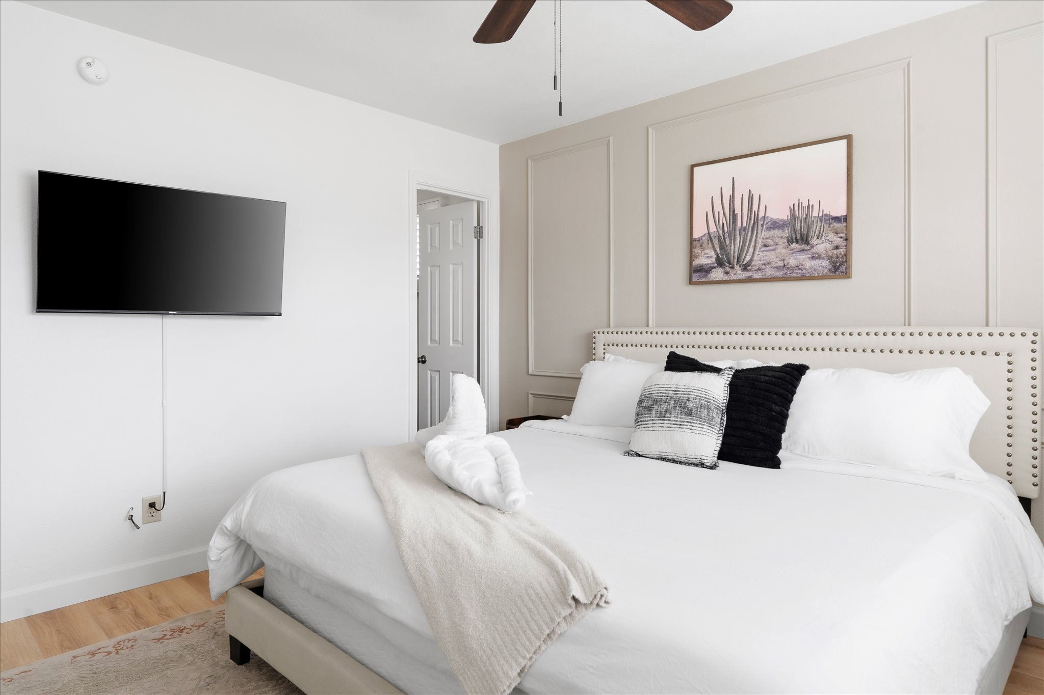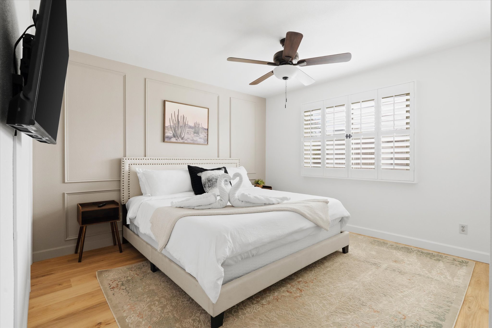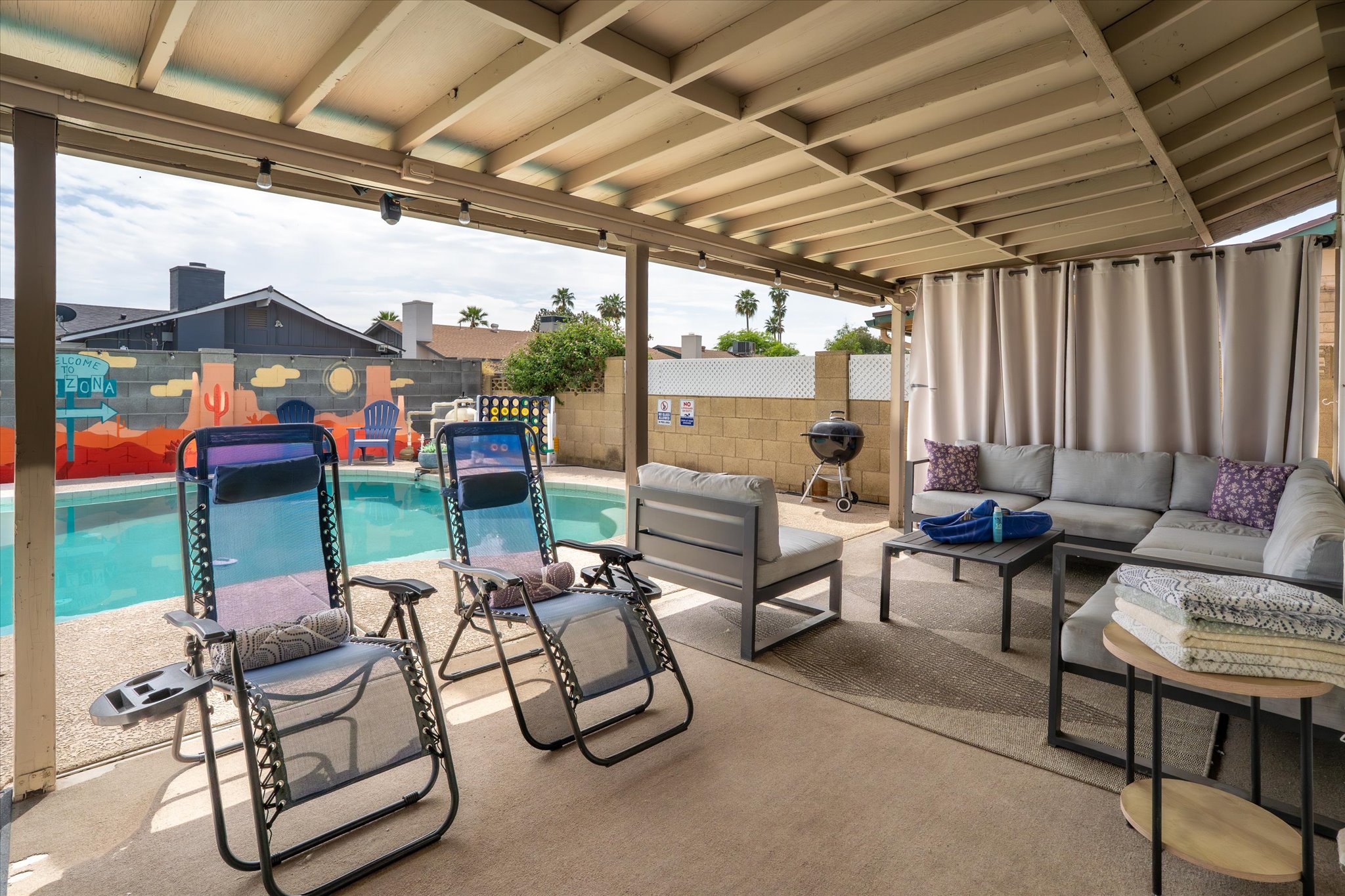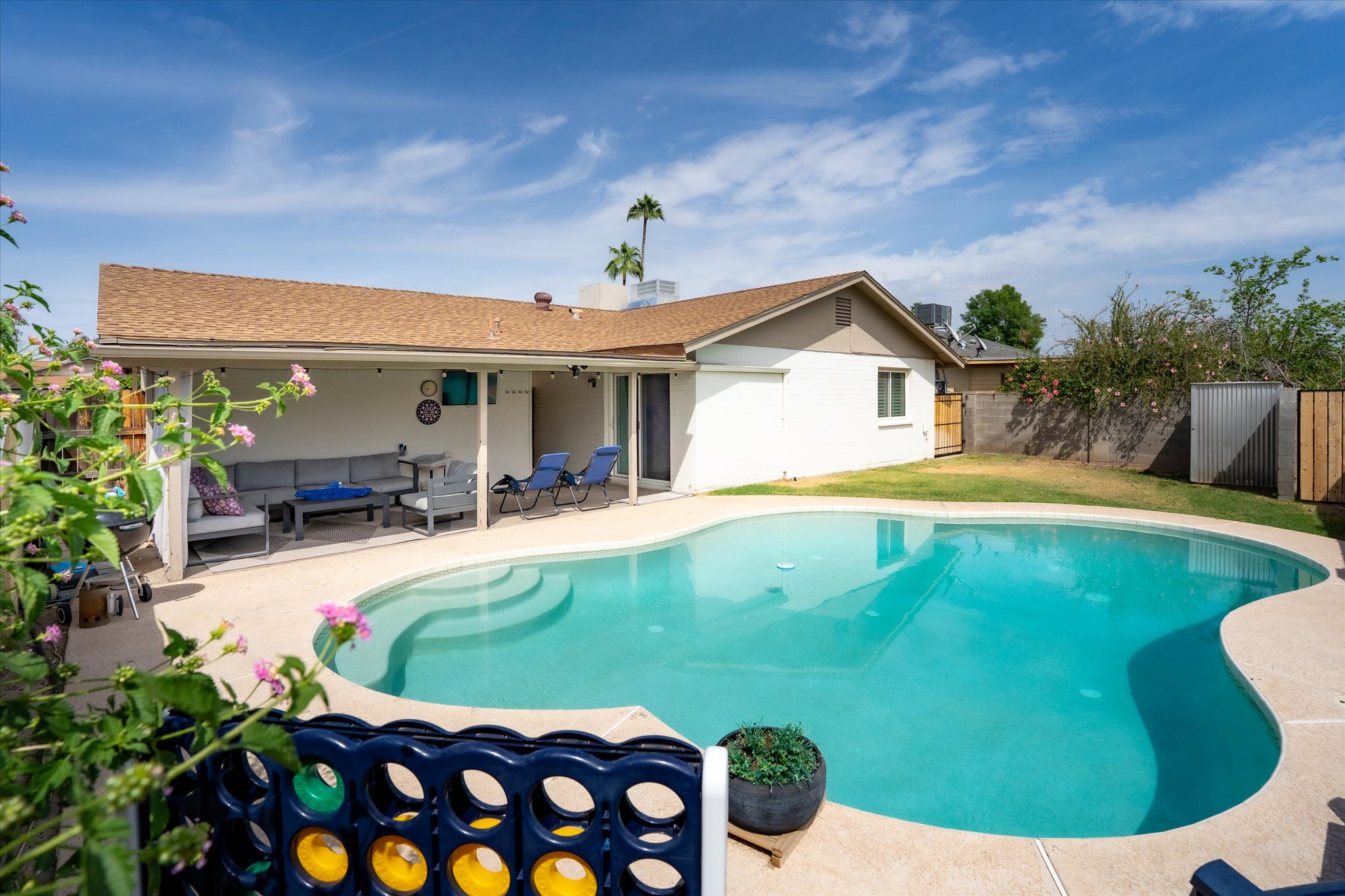 Remodeled 3BR/2BA Phoenix home with a private pool, fenced yard, covered patio with outdoor TV, EV charger, and fast Wi‑Fi. Great for families, small groups, pet travelers, and remote work.